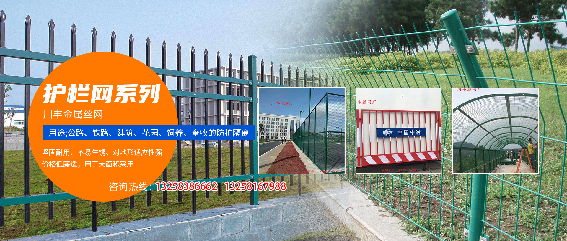 企業(yè)簡(jiǎn)介 四川川豐金屬絲網(wǎng)制造有限公司是四川省專業(yè)生產(chǎn)銷售鋼絲網(wǎng)、隔離柵及各種金屬篩網(wǎng)的廠家,公司擁有內(nèi)部先進(jìn)的數(shù)控大型自動(dòng)鋼絲排焊機(jī),流水線浸塑型設(shè)備,專業(yè)裹塑機(jī),電焊網(wǎng)片機(jī),重型菱形鋼板網(wǎng)機(jī)器,...